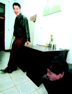 自作聰明的王某將被依法制裁。民警(左)笑著說:“從來沒見過這樣的蠢賊!”實習(xí)記者 路超 攝