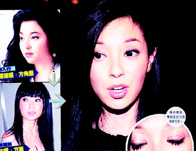 傅明憲入娛樂圈不久便割了雙眼皮,從浮腫的小眼睛變成了兩眼有神的“大眼妹”。數(shù)月前,她的下巴變尖成了瓜子臉。不過,這次她卻打死都不承認(rèn)自己再次整容,堅(jiān)稱是因?yàn)閻廴乃蓝菟隆?
