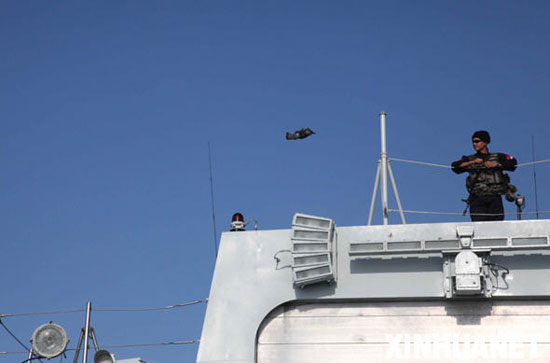 ????印度洋上、亞丁灣里,剛剛完成中外多艘商船護(hù)航任務(wù)的中國(guó)海軍艦艇編隊(duì)“海口”號(hào)導(dǎo)彈驅(qū)逐艦,正向著預(yù)定海域破浪前行。