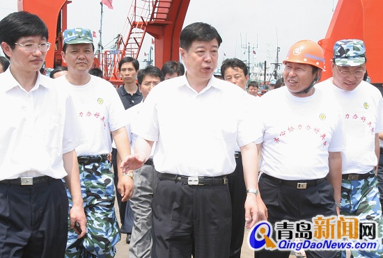 ????2008年4月9日,山東省委姜異康書記在省委常委、秘書長王偉,省委常委、青島市委閻啟俊書記,市委副書記、夏耕市長,市委王文華副書記等領(lǐng)導(dǎo)的陪同下,冒雨視察了青島港,聽取了青島港的工作匯報(bào)。