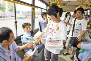 ????昨日,由青島日報報業(yè)集團和青島公交集團聯(lián)合組織發(fā)起的“建設車廂文化 宣傳島城文明”、“學微塵”學生志愿者公交售報活動啟動,百名學生志愿者走上公交車銷售早報和晚報,受到乘客熱捧,該活動將持續(xù)一個半月。