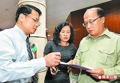 臺中市警局長胡木源(左)昨向市長胡志強(qiáng)說明四警懲處過程。