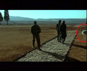 ????《士兵突擊》里,某一個傍晚,薛林、老魏和李夢三個人在許三多修的小路上散步談心,這個時候,一個毛茸茸的白色的麥克從屏幕右側伸了進來,持續(xù)了幾秒鐘,并且接下來的鏡頭中,又伸進來兩次。