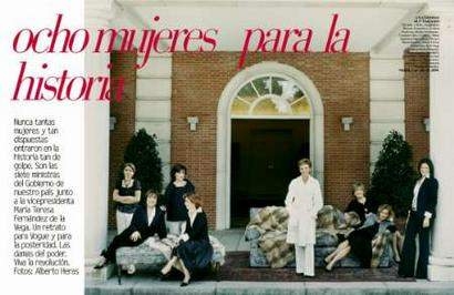 據(jù)《每日電訊報》報道,包括一名副首相在內(nèi)的西班牙8位女部長身穿合體的套裝或休閑裝、擺出不同姿勢的照片上了2004年的一期《時尚(Vogue)》封面。這張照片立即在西班牙引起巨大爭議。