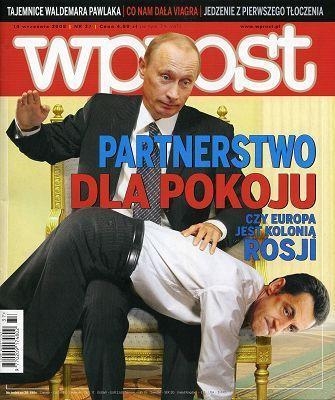 波蘭右翼周刊《Wprost》的封面刊登了俄羅斯總理普京拍打法國(guó)總統(tǒng)薩科齊的屁股的合成照片,其標(biāo)題為:《歐洲是否已淪為俄羅斯殖民地》。圖片一經(jīng)刊登,立即引發(fā)巨大爭(zhēng)議。在由格魯吉亞攻打南奧塞梯引發(fā)的俄格軍事沖突中,薩科齊充當(dāng)了調(diào)停者角色。