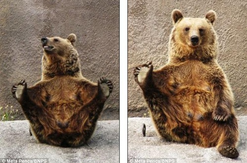 芬蘭動物園名為Santra的棕熊做瑜伽,動作標(biāo)準(zhǔn)