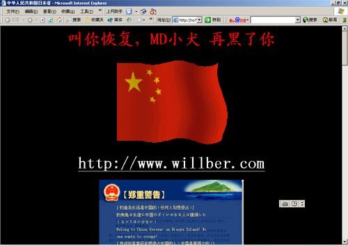 ?資料圖:早先日本網(wǎng)站曾被掛上五星紅旗。