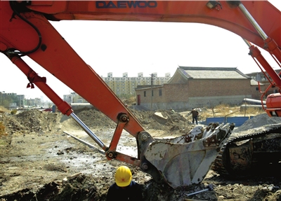 ③2009年,徐家拒絕拆遷,挖掘機(jī)在其門前施工。(資料圖片) 本報(bào)記者朱嘉磊攝