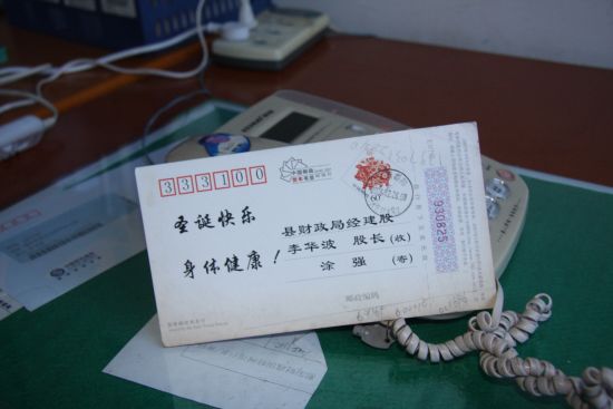 李華波逃跑前沒有處理辦公室,一張明信片孤零零的留在桌上