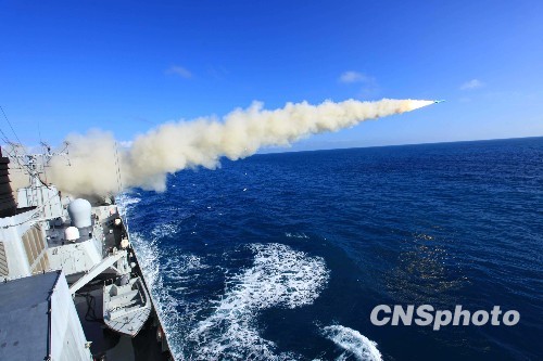 資料圖:海軍052C級(jí)171“??凇碧?hào)驅(qū)逐艦發(fā)射反艦導(dǎo)彈。