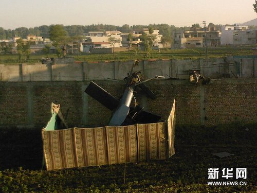 這是5月2日在巴基斯坦阿伯塔巴德拍攝的一架墜毀直升機的殘骸。新華社發(fā)(卡馬爾攝)