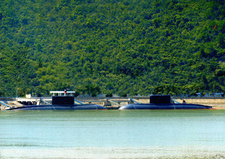 資料圖:榆林海軍基地的中國(guó)潛艇。