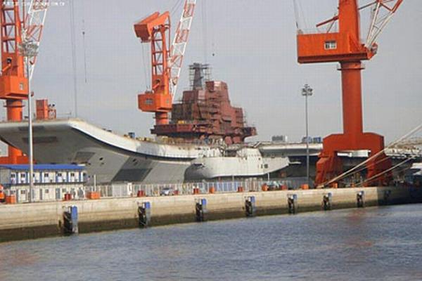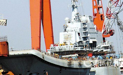 人民網(wǎng)資料圖:整修中的“瓦良格”號(hào)航母。