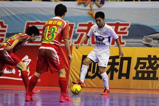 在1月6日21點(diǎn)結(jié)束的一場五甲聯(lián)賽第13輪的焦點(diǎn)戰(zhàn)役中,六冠王武漢地龍隊(duì)主場迎戰(zhàn)五甲新軍廣東福迪汽車隊(duì)。武漢隊(duì)在場面上一度占據(jù)優(yōu)勢(shì),并4次領(lǐng)先對(duì)手。但福迪汽車隊(duì)?wèi){借頑強(qiáng)的意志多次扳平比分,并在最后階段攻破武漢隊(duì)“五零戰(zhàn)術(shù)”,最終攻克武漢地龍“魔鬼”主場,7:5首次戰(zhàn)勝全國冠軍。 賽前武漢和廣東福迪汽車分居積分榜的第五和第七名,武漢隊(duì)仍有奪冠的希望,希望憑借主場之利吃下福迪;而廣東福迪汽車隊(duì)有兩名巴西外援傷停不能上場,只能更多地依靠國內(nèi)球員的發(fā)揮。比賽進(jìn)行到第4分鐘,武漢隊(duì)抓住對(duì)手防守時(shí)的一個(gè)的漏洞,王瑋傳球,胡杰在球門立柱一側(cè)推射破門得分,1:0領(lǐng)先。 武漢隊(duì)全華班的國腳們配合默契,福迪汽車隊(duì)顯得有些焦躁,巴西外援韋斯利憑借個(gè)人能力多次遠(yuǎn)射無功而返。此時(shí)主教練兼隊(duì)員張炯果斷調(diào)整進(jìn)攻思路,要求大家多打團(tuán)隊(duì)配合。第10分鐘,福迪汽車隊(duì)多次傳接配合后由楊都在門前一腳搶射將比分扳成1:1。隨后武漢隊(duì)王瑋和胡杰打出配合,并由王瑋打入一球,武漢隊(duì)2:1再次領(lǐng)先。福迪汽車隊(duì)的巴西外援也不甘寂寞,韋斯利和迪奧戈在門前精妙配合后由迪奧戈再度將比分扳平,2:2。 張炯帶領(lǐng)福迪汽車隊(duì)球員們多次扳平比分 2:2的比分一直帶到下半場,25分鐘時(shí)武漢隊(duì)張習(xí)在禁區(qū)弧點(diǎn)覓得良機(jī),左腳遠(yuǎn)射進(jìn)球,武漢隊(duì)3:2再度超出。本場比賽福迪汽車隊(duì)僅有2名巴西外援可輪換,體力消耗較大,突破受阻,只能采取遠(yuǎn)射的方式,但收效不佳。暫停時(shí)間福迪汽車隊(duì)及時(shí)布置了新的進(jìn)攻思路,以邊路突破和防守反擊為主,在場上核心張炯的帶領(lǐng)下多次頑強(qiáng)的扳回比分,戰(zhàn)成4:4后雙方回到同一起跑線。 此時(shí)戲劇性的一幕發(fā)生了,武漢隊(duì)的國內(nèi)球員射手王胡杰輪換時(shí)穿上了守門員的衣服上場,武漢地龍使出了殺手锏——“五零戰(zhàn)術(shù)”!換下守門員全部參與進(jìn)攻,武漢地龍力爭拼下3分。“五零戰(zhàn)術(shù)”的優(yōu)勢(shì)是進(jìn)攻人數(shù)比對(duì)手多一人,進(jìn)攻火力大大增強(qiáng);劣勢(shì)也同樣明顯,一旦被對(duì)手搶斷等于送給對(duì)方打空門。 雖然武漢隊(duì)聚集了一眾國腳,但顯然本場福迪汽車隊(duì)的巴西外援更是技高一籌,在武漢隊(duì)“五零戰(zhàn)術(shù)”圍得福迪汽車隊(duì)有些喘不過氣的時(shí)候,場上隊(duì)長迪奧戈突然殺出,搶斷李欣腳下的球后就是一腳吊射,皮球準(zhǔn)確的飛進(jìn)了空門,福迪汽車隊(duì)5:4反超了! 落后一球的武漢隊(duì)殺紅了眼,派上全部主力在福迪汽車隊(duì)半場發(fā)起一輪又一輪的攻勢(shì),終于由張習(xí)攻入一球,雙方再次5:5戰(zhàn)平。此時(shí)武漢隊(duì)更加信心十足,決心將“五零”堅(jiān)持到底。誰知福迪汽車隊(duì)的韋斯利再次中場斷球,再趟兩步就直接面對(duì)空門了!武漢隊(duì)球員無奈之下只得將其放倒。此時(shí)武漢已經(jīng)6次犯規(guī),福迪汽車隊(duì)獲得了大點(diǎn)球!全場多次遠(yuǎn)射打偏的韋斯利不會(huì)錯(cuò)過這么難得的機(jī)會(huì),一蹴而就,福迪汽車6:5再次超出! 再次落后的武漢隊(duì)傾巢而出,將福迪汽車隊(duì)球門圍得水泄不通。本場表現(xiàn)頗為出色的福迪汽車隊(duì)迪奧戈再次挺身而出,在后場斷球后一腳怒射,皮球準(zhǔn)確的飛入網(wǎng)窩,7:5!迪奧戈上演了帽子戲法。此時(shí)離比賽結(jié)束只有半分鐘了,武漢地龍的將士們?nèi)匀缓敛环艞?,繼續(xù)組織進(jìn)攻,無奈大勢(shì)已去,只得接受主場失利這一結(jié)局。 本場上演帽子戲法的福迪汽車隊(duì)隊(duì)長迪奧戈