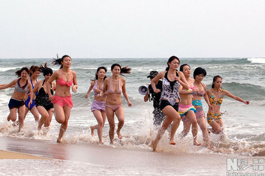 1月8日,選手們在水中訓(xùn)練。當(dāng)日,由北京一家私人保鏢公司舉辦的女保鏢選拔活動在三亞開始,并進(jìn)行了體能、格斗等訓(xùn)練科目。