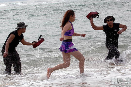 海邊見女保鏢訓練:墨鏡哥暴打泳裝女