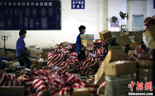 1月15日,重慶渝北區(qū)龍頭寺中國(guó)郵政快遞分揀處,春節(jié)臨近中國(guó)郵政快遞爆倉(cāng)。春節(jié)臨近快遞業(yè)務(wù)量大幅度增加,倉(cāng)庫(kù)里堆滿了等待分發(fā)的快遞物品。