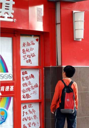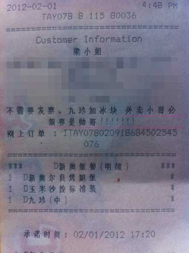 外賣單據(jù) ????“指定帥哥送餐”能變成常態(tài)嗎? ????肯德基昨日回應(yīng):“只接受正常送餐要求” ????早報訊服務(wù)行業(yè)是否可以有求必應(yīng),甚至對送餐的外送人員也可以提要求?“大眼鏡、睫毛修長的帥哥”、“相貌清秀”、“帶酒窩的帥哥”……最近,部分網(wǎng)友對快餐外送服務(wù)行業(yè)發(fā)起猛烈地“挑戰(zhàn)”,“火力”集中在“外賣小哥”的養(yǎng)眼程度上。 ????網(wǎng)友發(fā)帖:“帥哥送餐”居然實現(xiàn)了 ????春節(jié)長假還未結(jié)束,以肯德基為首的外送行業(yè)就被推到了風(fēng)口浪尖。全國不少微博網(wǎng)友紛紛曬出了自己壘成一疊的“外送小票”,從各個角度考驗肯德基的“指定服務(wù)”。 2月初,網(wǎng)友“bosnia_我是考攻”的一條微博,引來了數(shù)萬次的轉(zhuǎn)帖,回應(yīng)數(shù)也接近5000條。按照該網(wǎng)友的說法,自己在點單時提出了一項“特別要求”“不需要發(fā)票,九珍加冰塊,外賣小哥必須要是帥哥”。原本只是一時興起提了個“苛刻”的要求,想不到等到送餐時間,果然來了一位“眼睛大大圓圓、皮膚白白凈凈、又高又瘦的外賣小哥”。網(wǎng)友又驚又喜,她表示,自己整個人都快笑癱了?!岸@位外送小哥則很不好意思地用手捂臉,指著小票上的要求說,‘您這個……這個……我……滿意吧?’” 最神奇的是,10分鐘后,網(wǎng)友還接到了來自肯德基的確認電話,詢問:“(餐品)的數(shù)量質(zhì)量都沒問題是嗎?給您送餐的孩子還算漂亮嗎?” 消息一出,多數(shù)網(wǎng)友表示“太逗趣了”、“很好玩”、“肯德基‘賣萌’(意思一般理解為,刻意做出一些可愛的動作、言語等樣子來討好別人)”,也跟風(fēng)萌生了躍躍欲試的念頭。據(jù)不完全統(tǒng)計,網(wǎng)友網(wǎng)絡(luò)展示的同類型要求的送餐小票一下子猛增到近30張,包含了各種類型的帥哥。 除了“外賣帥哥”,還有網(wǎng)友在韓寒與方舟子口水戰(zhàn)正酣的時候,貼出了一張照片:肯德基的店門口新掛招牌,“本店店員代辦寫作證明,購全家桶贈送監(jiān)控錄像光盤一份,歡迎廣大青年作家來店寫作。”照片一出,就被各類青年熱烈轉(zhuǎn)載,圍觀這場口水戰(zhàn)的網(wǎng)友們找到了新的樂子。 與此同時,卻也有網(wǎng)友質(zhì)疑:“這是不是一場肯德基的微博營銷?靠這樣的方式,變相為肯德基‘加分’?” 官方回應(yīng):“只接受正常送餐要求” 2月3日,肯德基官方微博對此事進行回應(yīng)。此聲明稱,“小肯(肯德基)的騎手們很辛苦的,他們是我們的XDJM(兄弟姐妹)。拜托大家和我們一樣善待他們。補充一句,小肯只接受正常送餐要求,其他要求恕不提供。相信親們能理解?!毖韵轮?,希望大玩“指定帥哥”服務(wù)的顧客可以“收手”了。這一下,網(wǎng)友“Jenny”開玩笑表示,“(指定帥哥外送服務(wù))限量供應(yīng),送完即止了”;也有網(wǎng)友認為,“這樣不是挺娛樂大眾的嗎?大家也沒有惡意呀?!?/p> 在采訪中,記者了解到,浙江肯德基餐飲有限公司的營運部門還沒有接到過大規(guī)模過類似此類要求的“送餐訂單”,“一般顧客對訂單的特殊要求,還是有關(guān)食物本身以及顧客的習(xí)慣。比如,飲料是否加冰、沒有零錢找等備注?!睂τ谶@樣的“特殊要求”,外送行業(yè)的業(yè)內(nèi)人士普遍表示“比較為難”,算是一個“棘手問題”,“只能在可操作的范圍內(nèi),盡量滿足顧客要求,當然也不會配合那些“不合理的要求”。 對于網(wǎng)友貼出的“KFC代開寫作證明”照片,肯德基官方微博也進行了回應(yīng),表示圖片是網(wǎng)友PS的,肯德基的門店無此項服務(wù):“提供寫作證明不是小肯的強項,抱歉讓親們失望了。謝謝幫小肯P圖、宣傳的親們,辛苦了?!?/p> |