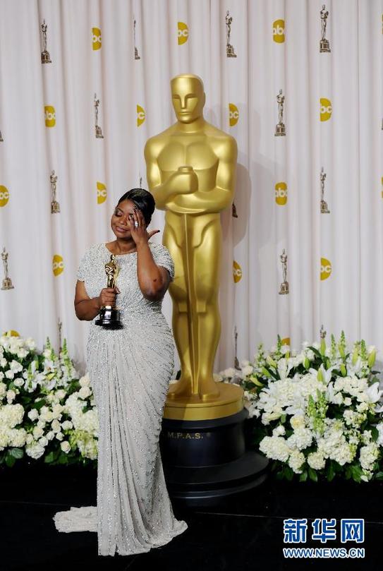 2月26日,在美國洛杉磯好萊塢,因影片《幫助》獲第84屆奧斯卡最佳女配角獎的奧克塔維婭·斯潘塞手捧“小金人”留影。第84屆奧斯卡頒獎典禮當天在此舉行。