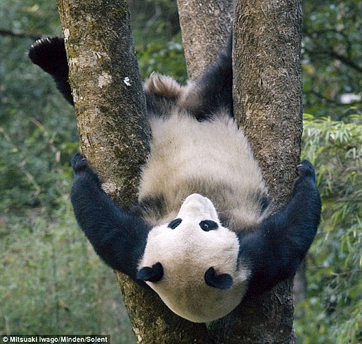 日本攝影師Mitsuaki Iwago抓拍到的大熊貓幼崽表演倒立“功夫”。
