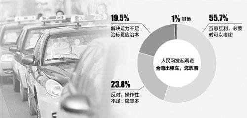 據(jù)統(tǒng)計,我國合法營運的出租車目前已超百萬輛,行駛中只載單一乘客的出租車約占70%。北京、上海、南京等大城市一些人士認為,鼓勵合乘出租車既能減少出租車資源、燃油、司機時間的浪費,從而減輕出租車整體運營壓力、促進環(huán)保,也能緩解市民出行難的壓力。