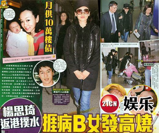 單親媽媽楊思琦美國產(chǎn)女后千呼萬喚歸來,舟車勞頓下,產(chǎn)后剛復(fù)元的楊思琦及剛滿月的楊卓穎返港后齊齊發(fā)高燒。身體虛弱亦不惜冒險返港,除因簽證即將到期,最主要是停工大半年坐食山崩,楊思琦獨(dú)立養(yǎng)女兒,每月背10萬樓債,負(fù)擔(dān)極重,顧不得不急返港復(fù)出賺錢。清純形象盡喪的楊思琦,行情不跌反漲,據(jù)知產(chǎn)后首個活動酬勞已被搶高四倍,可惜錢未賺,已經(jīng)搞壞女兒的身體。