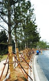 此次改造首先要清除原有草坪外運(yùn),對原土用機(jī)械進(jìn)行深翻。然后,追施有機(jī)肥20余噸,表面回填種植土,并根據(jù)設(shè)計(jì)標(biāo)高(保證廣場能夠自然順?biāo)┻M(jìn)行平整,并用小型壓路機(jī)進(jìn)行壓實(shí),防止草坪種植后的沉降。接下來,用碎土機(jī)進(jìn)行碎土,使土質(zhì)、土層密度均勻,土壤松散,土壤粒徑不大于0.5cm。人工找平綠化地,達(dá)到地形標(biāo)高要求。接著,用機(jī)械進(jìn)行播種,機(jī)械達(dá)不到的地方和細(xì)部用人工播種,力求草籽均勻,再覆蓋一層過篩薄土,覆蓋草簾保濕、保溫、防風(fēng)。播種結(jié)束后,一次將綠地內(nèi)的水澆足、澆透,噴水15天,每天2遍。出苗后,一個(gè)月成坪,進(jìn)入日常維護(hù)管理。 |