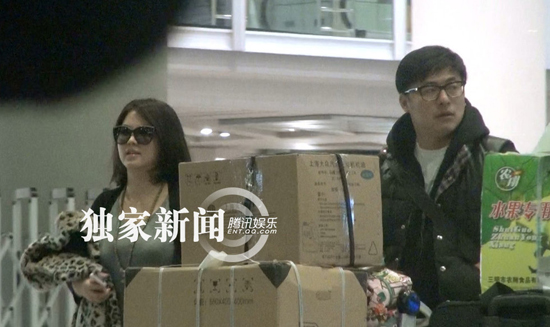 李湘夫婦攜愛女回京 王岳倫當苦力否認離婚(組圖)