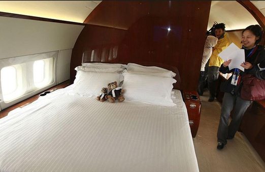 2011年4月13日,參觀者在一架波音商務機內的臥室參觀。