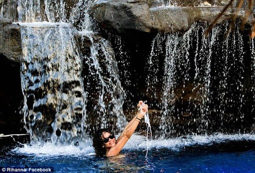 蕾哈娜自曝半裸戲水照 豪放扯泳衣自抹乳液(組圖)