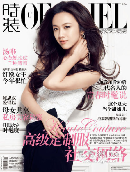湯唯獻(xiàn)藝雜志封面 白衣黑裙顯優(yōu)雅氣質(zhì)(組圖)