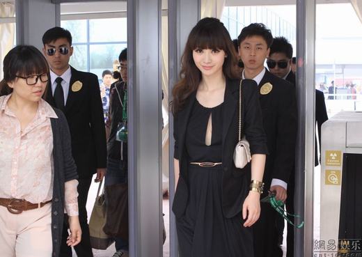 柳巖真空開胸裸背亮相北京車展 保鏢護駕排場大
