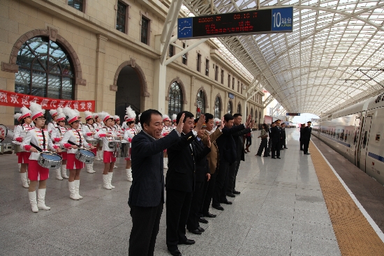 ,青島火車廣場彩球飛舞,鑼鼓喧天。市總工會主席李皓等有關(guān)領(lǐng)導在火車站熱烈歡送