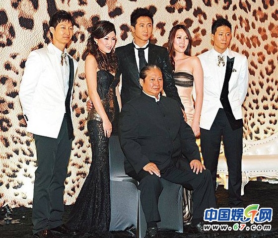 洪天明跟周家蔚結婚當日,洪金寶跟前妻所生的兩個兒子及女兒上臺拍大合照。