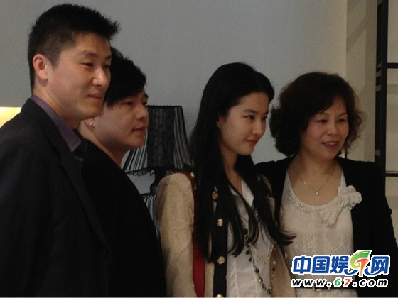 劉亦菲參觀服裝公司 干爹陳金飛全程陪同親密隨行