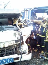 早報訊 昨天清晨5時20分左右,孫師傅開著大貨路過金華路與瑞昌路路口時,從金華路上突然沖出一輛廂式貨車,兩車剎車不及撞在一起。事發(fā)后,廂式貨車司機被困在駕駛室內,警車、消防車、救護車趕到,大家展開近1小時的救援行動。 兩貨車十字路口頂牛 “這輛白色廂式貨車沿金華路由南向北行駛,藍色半掛貨車沿瑞昌路從西邊駛來,就聽見‘轟’一聲,兩車在十字路口頂在一起?!庇浾呗動嵹s到現(xiàn)場,一名目擊者稱,藍色半掛貨車司機沒有受傷,下車看到廂式貨車司機雙腿被卡在方向盤下面,立即撥打110和120。 1小時破拆救出傷者 記者在現(xiàn)場看到,10多名消防隊員圍在廂式貨車前商討營救方案。廂式貨車車頭扭曲變形,前擋風玻璃完全破碎,放倒的駕駛座上半躺著50多歲的男司機,腿部的劇痛讓他不時發(fā)出呻吟聲。后排車座上,急救醫(yī)生一邊安慰他,一邊給他靜脈注射抗休克藥物。110民警指揮藍色半掛貨車往后倒,逐漸與廂式貨車分離開。 記者看到,救援人員用撬棍撬開副駕駛位置扭曲變形的車門,接著使用無齒鋸切割扭曲的車身。一名消防隊員脫下身上的防護服,裹在受傷司機身上,防止他被濺起的火花燙傷,隨后使用液壓剪和千斤頂,擴大方向盤與駕駛座之間的縫隙,救援行動持續(xù)近1個小時,受傷司機終于從車內被抬出。 事發(fā)路口黃燈閃爍 記者在現(xiàn)場見到了藍色半掛貨車司機孫師傅,他稱事發(fā)時他開車準備沿瑞昌路去倉庫裝載水泥,來到路口時因為是清晨,信號燈一直是黃燈閃爍,他有意減慢車速,這輛廂式貨車從金華路沖出,車速足有每小時50公里,孫師傅稱自己當時緊急剎車,在路面上留下了兩米多長的剎車痕跡,但還是撞在一起。記者隨后趕到海慈醫(yī)院了解到,受傷的廂式貨車司機姓崔,今年59歲,他的右腿小腿骨折,腳部和腿部有多處擠壓傷。(記者 黃飛 通訊員 李寧德 攝影報道) |