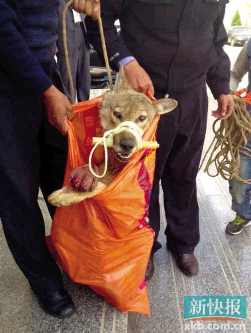據(jù)楊健介紹,大概五六個人參與到控制狼的過程中。雖說這只狼已經(jīng)受傷,但是鑒于它體積很大并且?guī)в泄粜?,所以要先按住頭和脖子,確保其不會傷人。楊健說,當時,有人站在桌子上,有人站在椅子上,從各個角度去圍住狼,然后按住它的頭和脖子。在控制住狼之后,先把狼的嘴用繩子綁緊,避免咬傷人,同時把狼的身子用袋子裝起來。