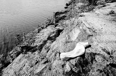 昨日,孩子出事被淹沒(méi)的河岸邊,還殘留著一只襪子。