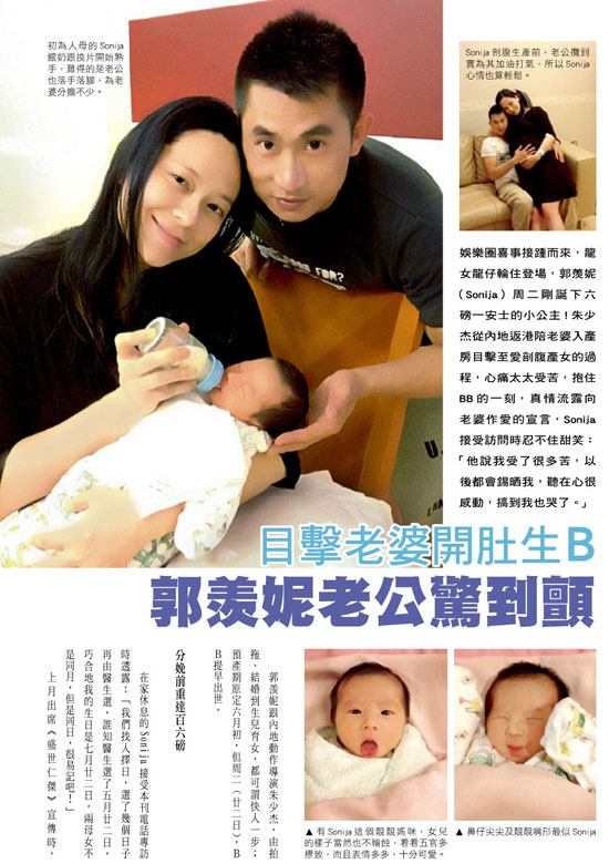 郭羨妮剖腹生女兒 寶寶照片曝光可愛(ài)吐舌(組圖)