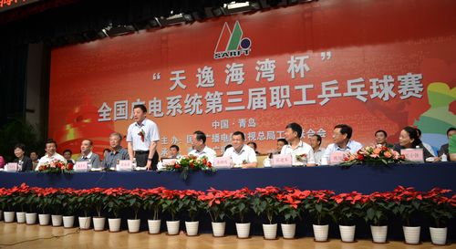 ????青島新聞網(wǎng)5月31日訊 昨天上午,由國家廣電總局工會聯(lián)合會主辦、青島市廣播電視臺承辦的“天逸海灣杯”全國廣電系統(tǒng)第三屆職工乒乓球賽在青島黃海飯店舉行。來自廣電總局機關(guān)、直屬各單位和全國各省、直轄市、自治區(qū)、部分計劃單列市等廣電系統(tǒng)的相關(guān)領(lǐng)導(dǎo)參加了開幕式。