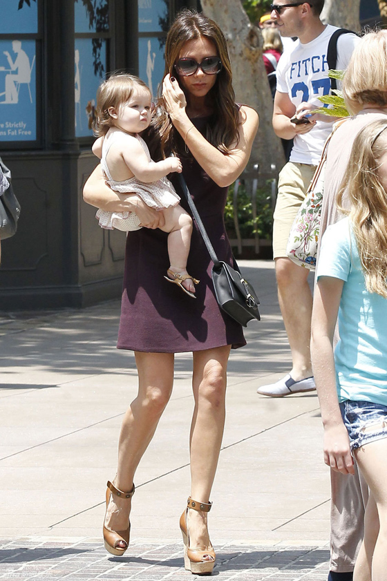 貝嫂維多利亞攜子女出行 小七肥嘟嘟可愛
