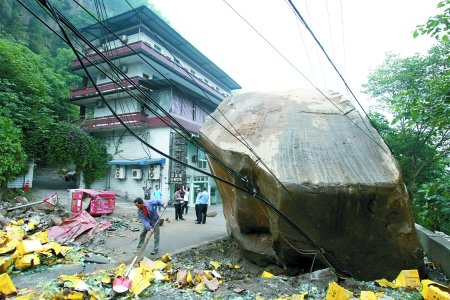 “連日下雨是塌方的誘因?!爆F(xiàn)場專家勘查后表示,對于路面上巨石的處置,只能爆破弄碎。專家到山上勘查后發(fā)現(xiàn),崖壁上有的地方肉眼還能看見五六米長的裂縫,該片區(qū)還可能再次塌方,而巨石滾落的軌跡無法預測,因此周邊大約一千米范圍的居民都要緊急疏散。