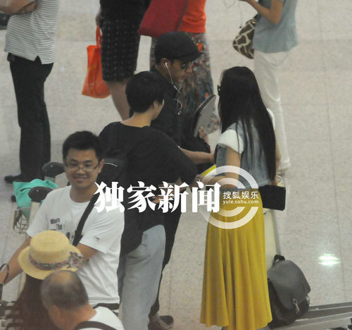 楊冪劉愷威情侶裝現(xiàn)身機(jī)場(chǎng) 楊冪摘墨鏡安檢素顏憔悴(圖)