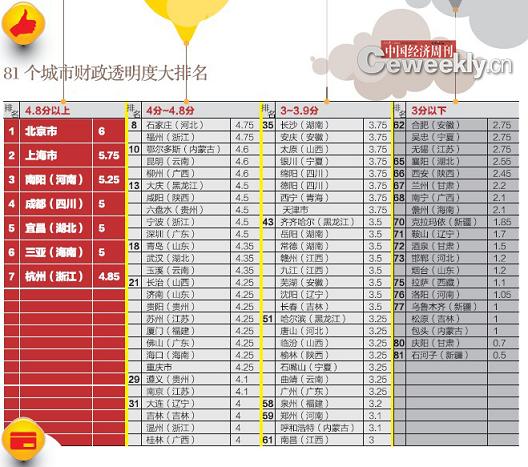 81個(gè)城市財(cái)政透明度大排名