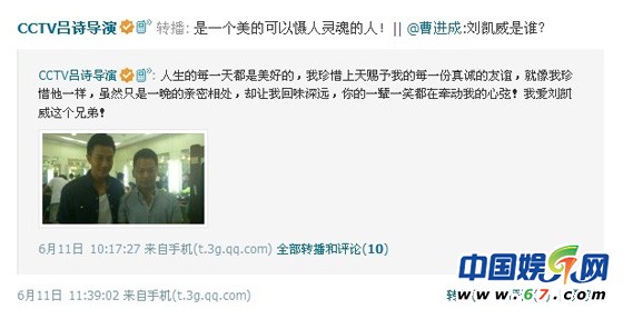 央視男導(dǎo)演呂詩肉麻示愛劉愷威 稱對(duì)其迷戀遐想