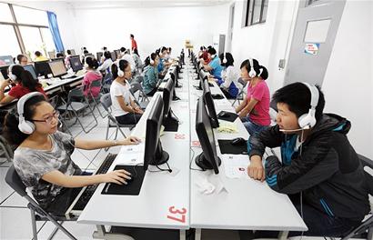 正式開考后,每個(gè)考生都對著電腦屏幕大聲地朗讀,整個(gè)教室里頓時(shí)變得嘈雜起來,不過由于戴著隔音耳機(jī),考生相互之間并不受干擾。