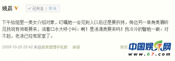 姚晨凌瀟肅昔日肉麻微博曝光
