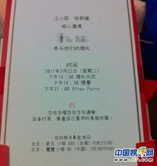 董璇微博曬李小璐賈乃亮婚禮請柬(圖)