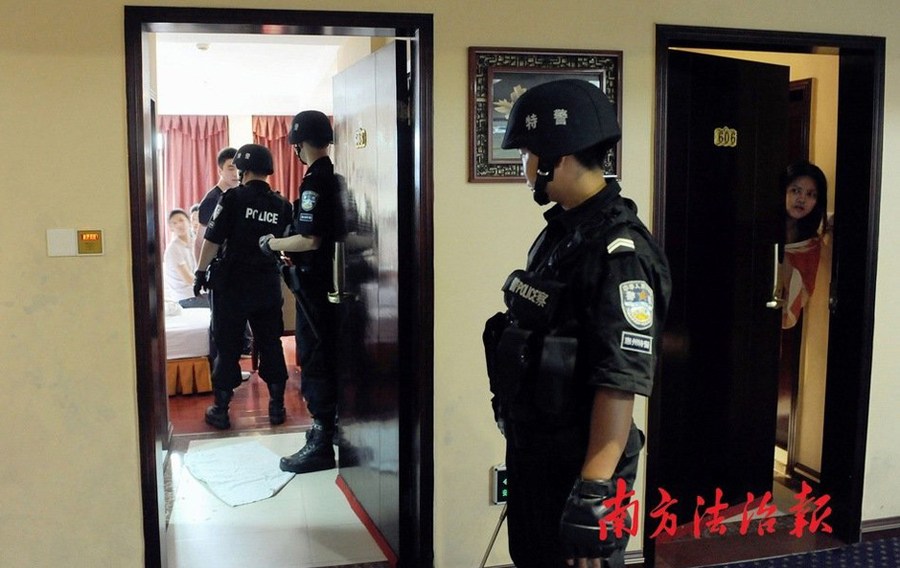 警方將“1126”的涉黑團(tuán)伙主要成員控制,鄰房女子一探究竟。南方法治報(bào) 錢文攀 攝