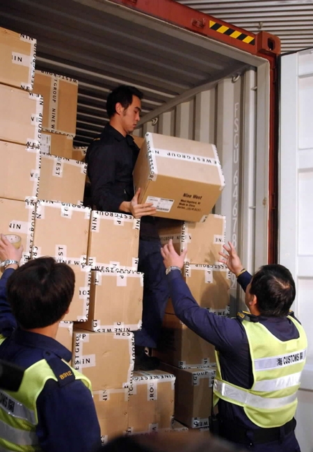 2004年1月1日,《內(nèi)地與香港關(guān)于建立更緊密經(jīng)貿(mào)關(guān)系的安排》(CEPA)開始實(shí)施。這項(xiàng)中央惠港政策,恰到好處地出現(xiàn)在香港經(jīng)濟(jì)陷入低谷的時(shí)刻,涵蓋貨物貿(mào)易、服務(wù)貿(mào)易和貿(mào)易便利化,著意加速兩地間資本、貨物、人員等要素的便利流動(dòng)。 圖為2004年1月1日,香港海關(guān)人員在檢查“CEPA”實(shí)施后第一批進(jìn)出的貨物。(新華社記者 王小川 攝)